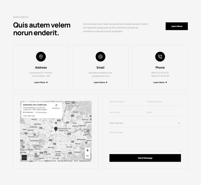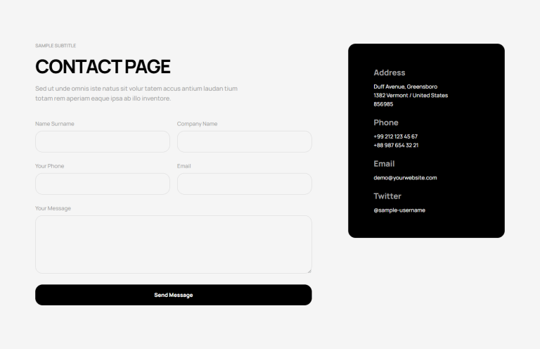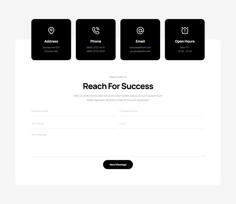 The integration of our contact sections into your website is as seamless as it is impactful. Designed to be intuitively navigable, these sections encourage your visitors to reach out, whether for inquiries, support, or feedback. The responsiveness of our designs ensures that this experience is uniform across devices, from desktops to smartphones, thereby maximizing accessibility and interaction. The result is a noticeable uptick in user engagement and satisfaction, key metrics that reflect the health of your online presence.