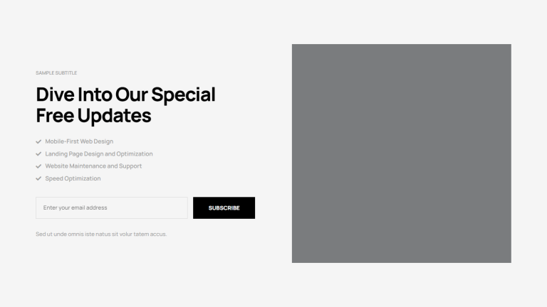 Seamless Integration: Our email opt-in sections are designed to integrate effortlessly with a wide range of email marketing services. This seamless integration ensures that the transition from visitor to subscriber is as smooth as possible, enhancing the user experience and improving your subscription rates.