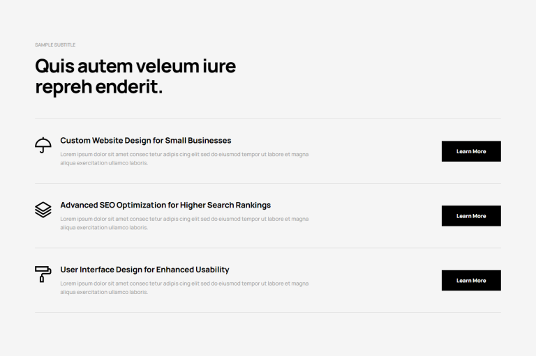 Optimized for Interaction and Conversion: Lists are more than informational; they’re a pathway to action. Whether guiding users towards making a purchase, exploring services, or contacting your team, our list sections are designed with clear, actionable steps to encourage user engagement and conversion.