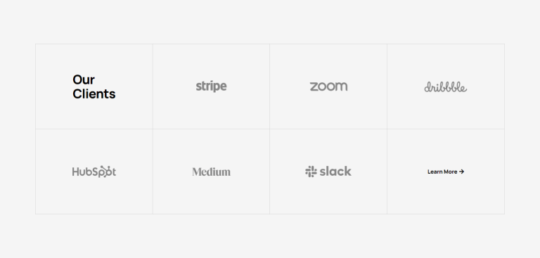 Enhanced Trust and Credibility: Displaying logos of partners, clients, or affiliations can significantly boost your brand’s credibility. Visitors are more likely to trust your business when they see established brands associated with it, making the logo grid an essential element for building confidence in your brand.